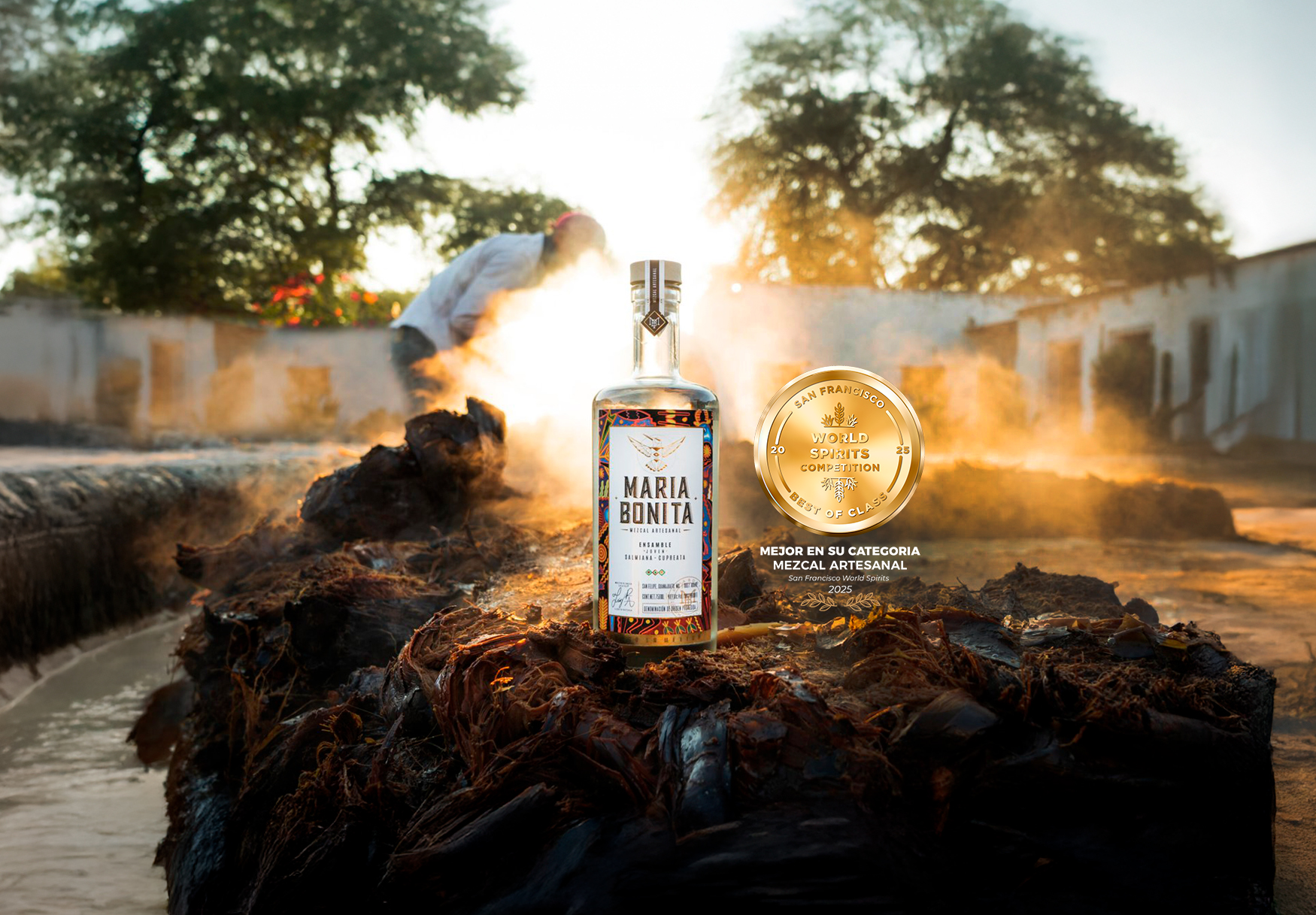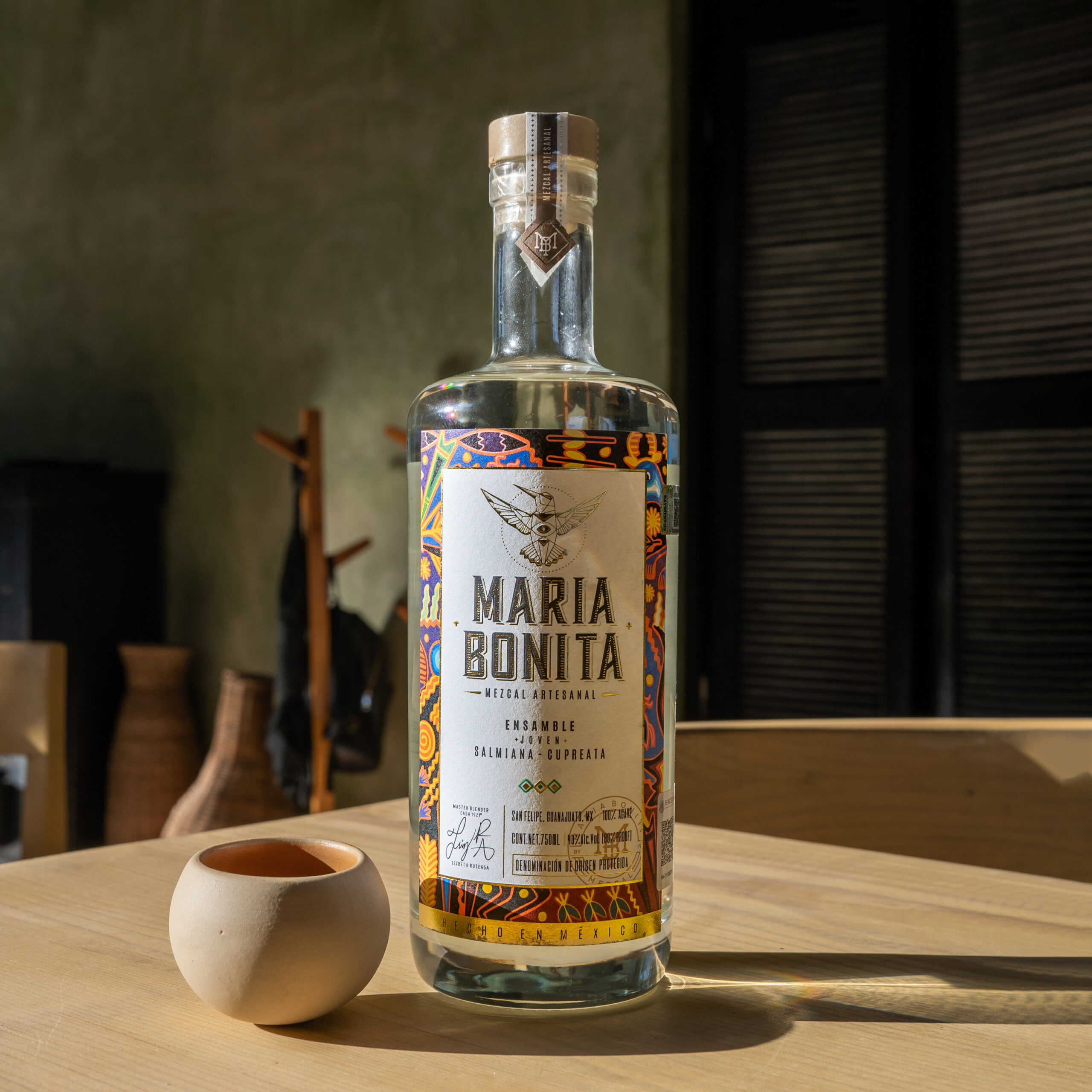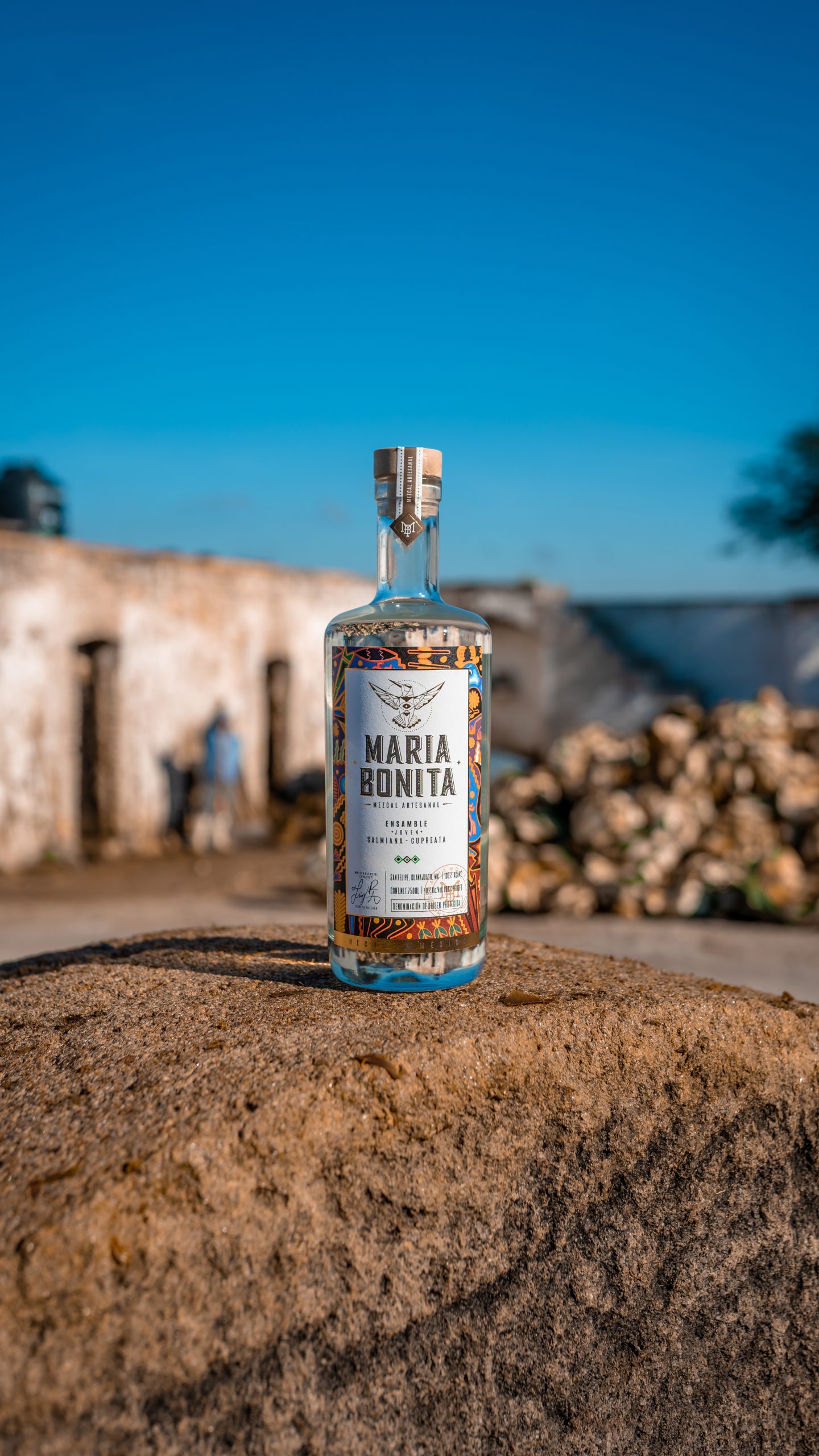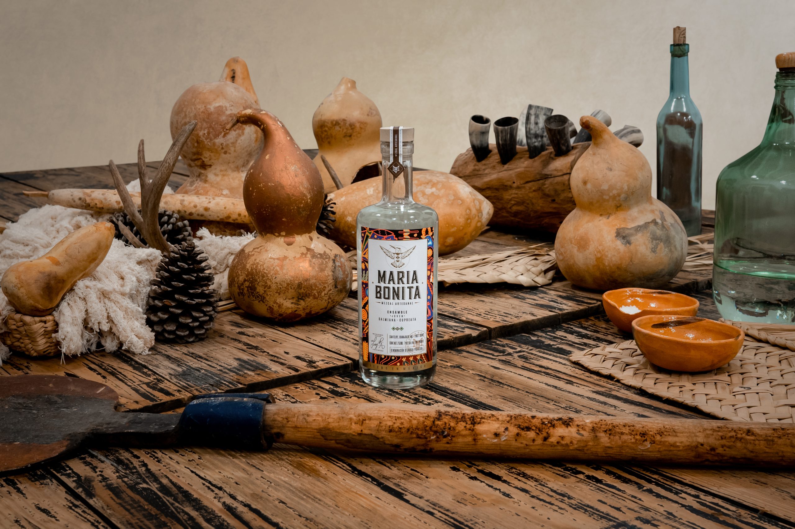 María Bonita Mezcal artesanal joven, es un mezcal elaborado en San Felipe Guanajuato, a partir de un ensamble de agave Salmiana y Cupreata, ofrece una dimensión refrescante y vivaz a la experiencia de degustación, es poseedor de un sabor único, equilibrado, complejo y armónico al paladar.