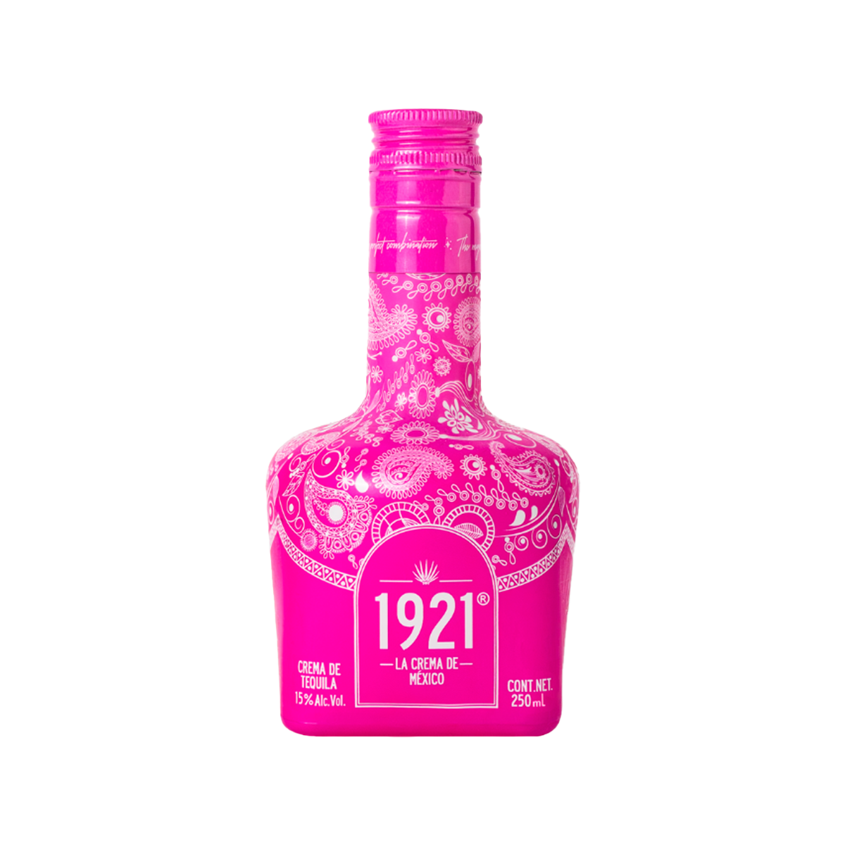 1921 Crema de Tequila 250ml Edición Irresistible Rosa | 15% Alc. Vol. | Producto Hecho en México | No contiene huevo, no contiene soya, libre de gluten, libre de lactosa, no contiene nuez y cacahuate.