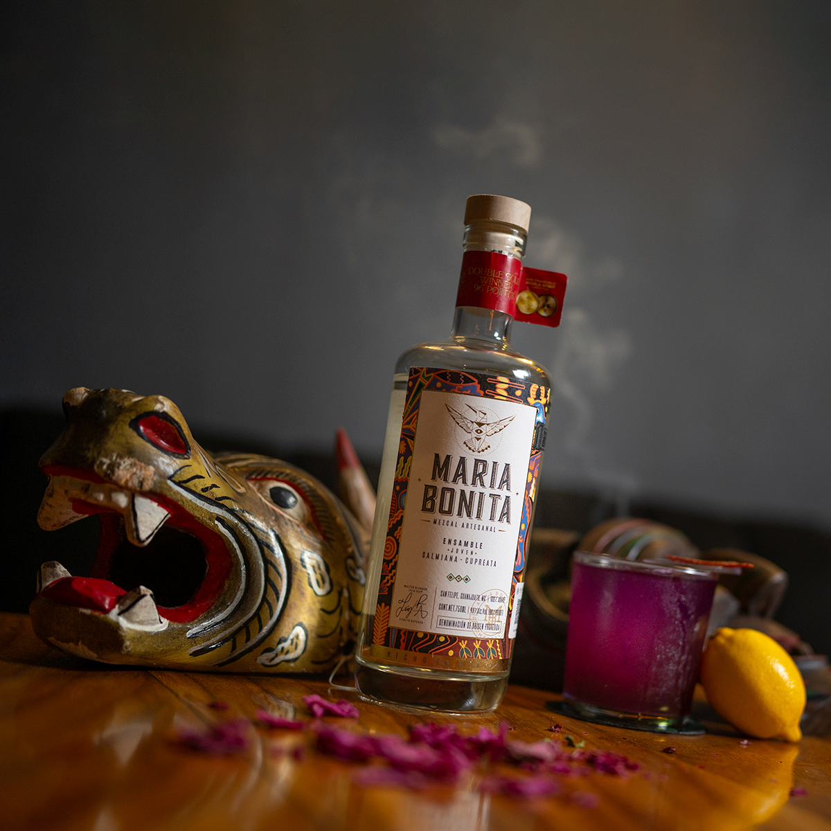 María Bonita Mezcal Artesanal ofrece una experiencia sensorial refrescante y vivaz. Este delicioso mezcal, elaborado cuidadosamente con un ensamble de agave salmiana y cupreata combina la frescura del agave con delicadas notas cítricas. Sus deliciosos aromas herbales crean la magia de una combinación perfecta. Reconocido con doble medalla de oro con 99 puntos en el San Francisco World Spirits Competition 2025.